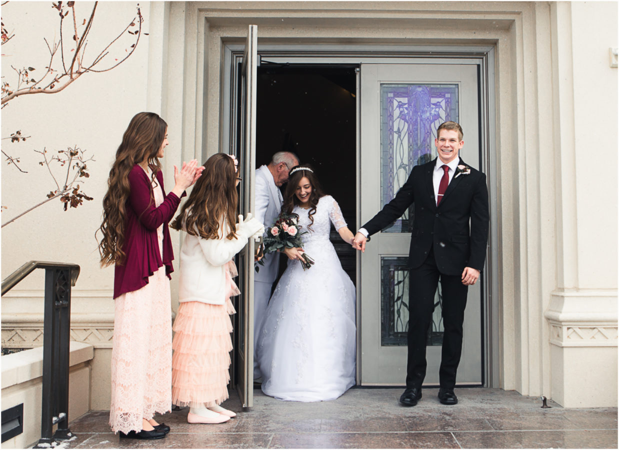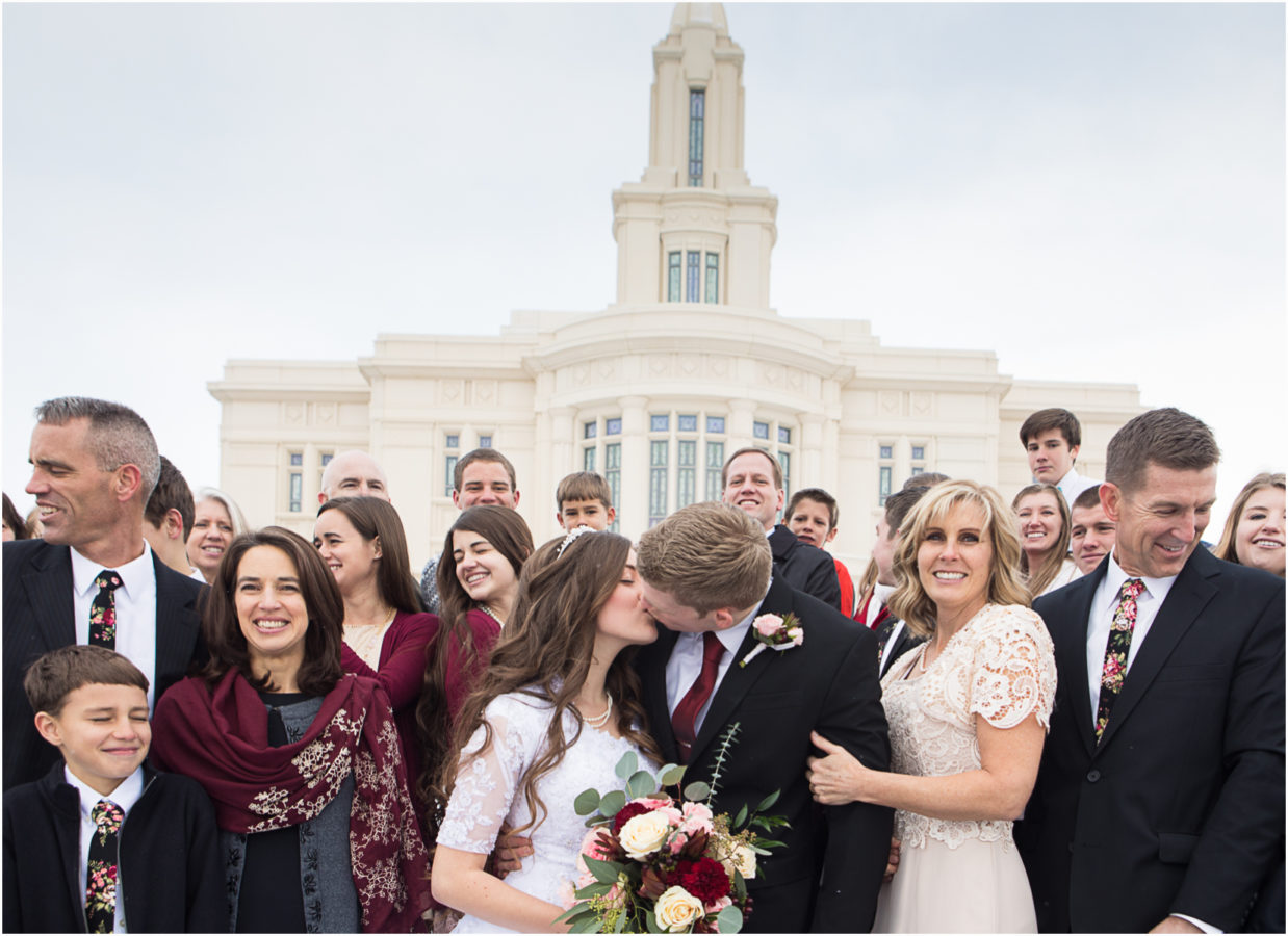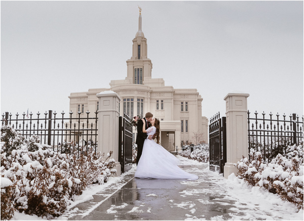 Utah wedding photographer photographs the payson utah lds temple. I love shooting lds utah weddings. I am a Utah wedding photographer. The Payson Utah temple was so pretty this day. Even for a winter wedding the Payson Utah Temple is still so beautiful. I love shooting mormon weddings at the Payson Temple. Payson Temple Weddings are so fun in their country setting of Utah. These cute kids are from out of state but the Payson Temple is close to Brigham Young University. Payson Temple weddings are a great fit for a girl who is going to BYU. This was the first time I have ever photographed a wedding at the Payson Temple and I loved being there to take their wedding photos.