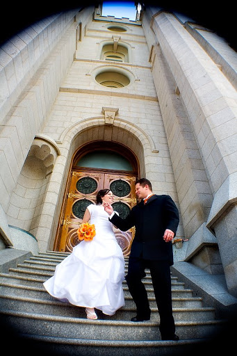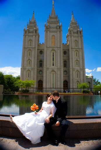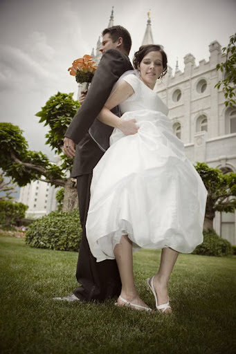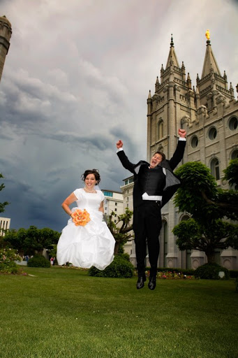 We had beautiful weather for this wedding. Even when the clouds threatened to storm it was gorgeous. Jon thought he would be busy writing his law review paper, so I somehow managed to make one of my dear friends from high school be my assistant. Little did Jon know that our car and baby disagread with his good study habits. After dropping me off at Temple Square, Jon started home. He only made it to 1300 E before our car gave one last heive and died. I had Michelle, my friend, drive me home and then I paniced about how to get to the reception. Luckly a neighbor let me borrow their car and everything turned out ok. Except for our car I still don’t know what’s wrong with it. I hate car trouble!